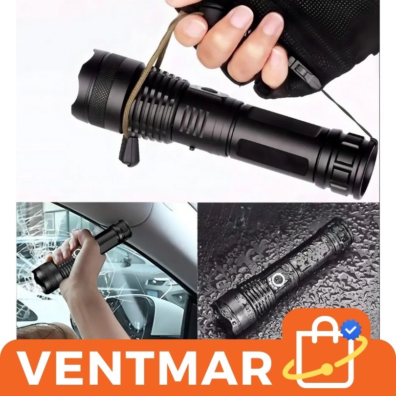 Iluminá cualquier entorno con esta linterna táctica de alta potencia, ideal para camping, emergencias, vigilancia, trabajo nocturno, hogar o auto.